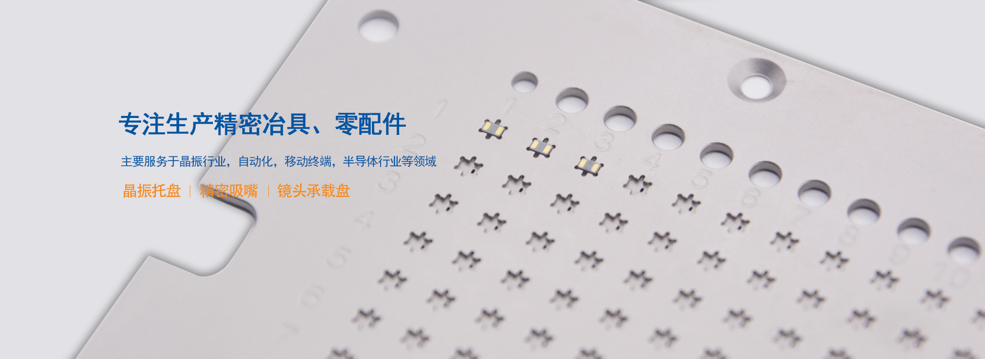 無(wú)錫吉微精密電子有限公司專(zhuān)業(yè)生產(chǎn)精密冶具、零配件等以及從事精密冶具配套設(shè)備生產(chǎn)的高新技術(shù)企業(yè),公司自2013成立以來(lái),建立國(guó)際標(biāo)準(zhǔn)化管理體系,2018年曾通過(guò)ISO9001:2015質(zhì)量體系認(rèn)證。同時(shí)獲得“國(guó)家科技型中小企業(yè)”榮譽(yù)證書(shū),包括專(zhuān)利證書(shū)已經(jīng)50+。主要供應(yīng):晶振托盤(pán)、精密吸嘴、鏡頭承載盤(pán)等。